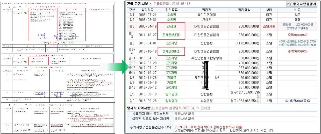 - 을구: 전세권, 임대차 계약 등 기타 권리가 기록됩니다.